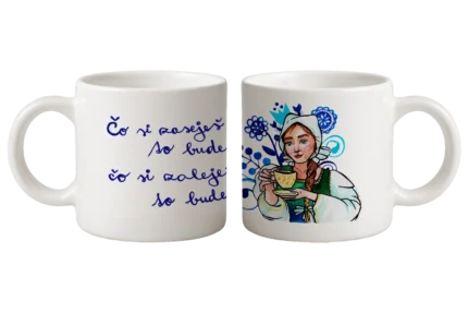 Ponúkame Vám biele keramické hrnčeky potlačené pestrými a nápaditými ilustráciami. Tematické kresby prípadne ľudové motívy akoby boli zrkadlom slovenskej ľudovej predstavivosti a obrazotvornosti. Pre potešenie a radosť sebe a svojím blízkym z originálneho darčeka.Výška 70 mm Priemer 70 mm Objem 150 mlIlustrácie: Lucia Hatarová Gaššová
