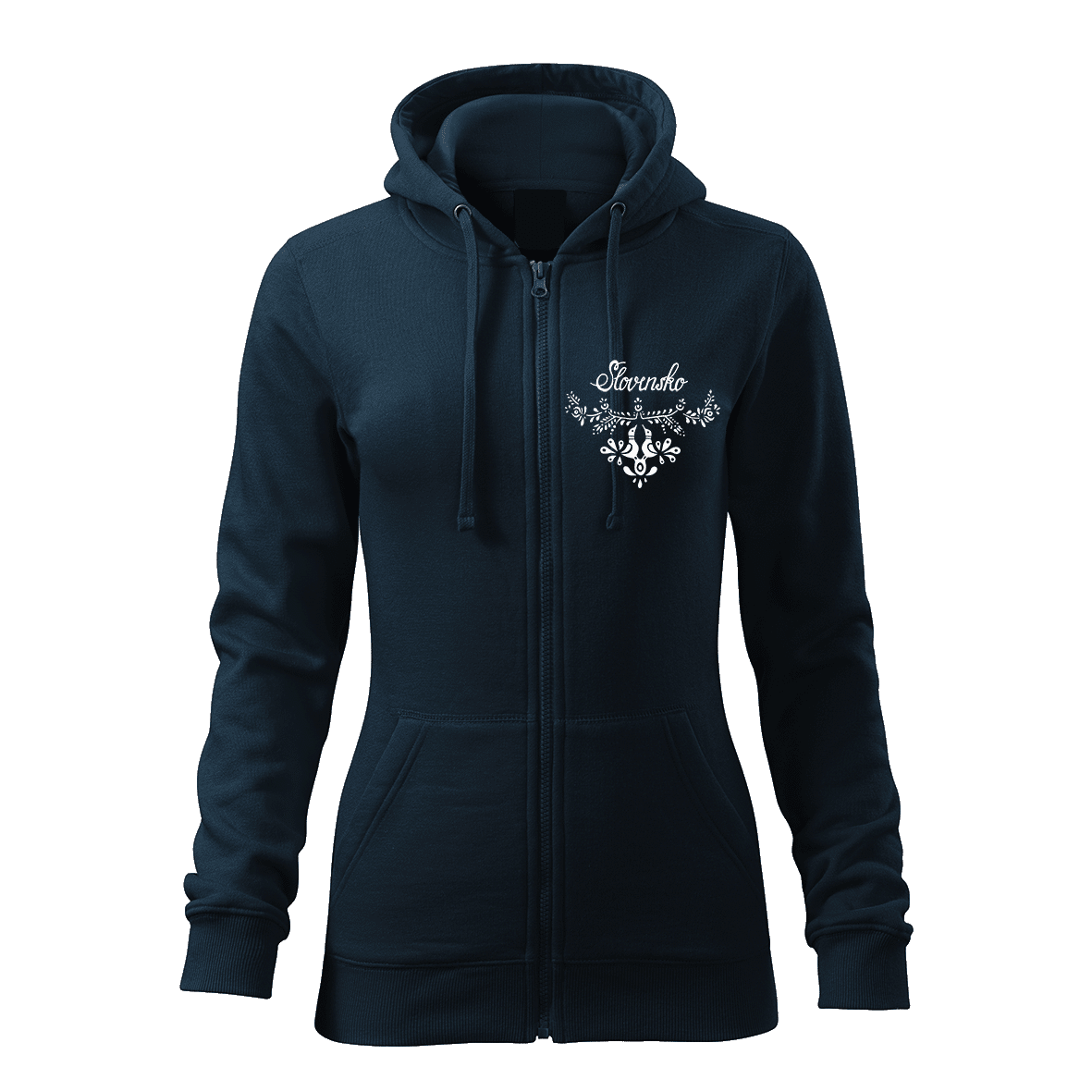 Dámska mikina s kapucňou a zipsom Slovensko tmavomodrá