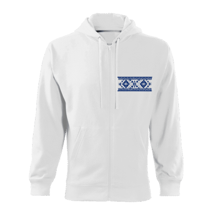 Pánska mikina s kapucňou a zipsom vzor biela