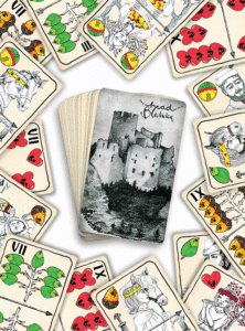 Zaujímavo sme vyobrazili esá. Tie sú tak trochu zhutnením ľudského bytia. Zobrazujú štyri ročné obdobia, ktoré symbolizujú čas v živote človeka. Jar poukazuje na veselosť detstva, leto na krásu a sviežosť mladosti, jeseň prináša plody múdrosti a zrelosti a napokon zima znázorňuje obdobie človeka, ktorý si svieti cez horizont do večnosti. Sedmové karty na hru a pobavenie sa Vám určite budú páčiť.