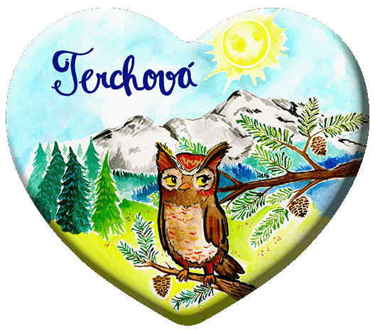 Drevená magnetka so sovou a nápisom Terchová. Magnetky sme vyrobili z bukového dreva a ručne opracovali, je v nich kus poctivej práce našich majstrov. O výzdobu sa postarali naši šikovní ilustrátori, ktorí ich návrhom venovali svoj čas a nápaditosť. Tak trochu sa snažiac vystihnúť niečo z danej lokality a vniesť to na kúsok zušľachteného dreva.