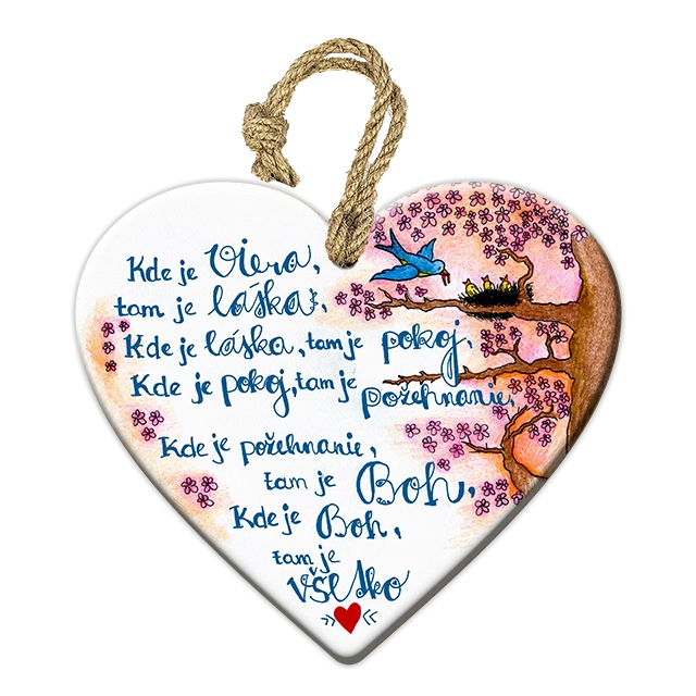 Kombinácia vtáčikov a romantického textu vytvára príjemnú atmosféru, ktorá sa hodí do útulných interiérov aj ako milé vyznanie v podobe dekorácie.