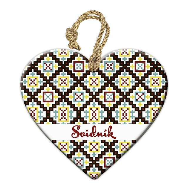 Táto živicová kľúčenka spája moderné spracovanie s tradičným vzorom výšivky zo Svidníka. Jasný folklórny motív a nápis Svidník jej dodávajú výraznú regionálnu atmosféru, vďaka ktorej pôsobí ako krásny malý suvenír s príbehom.