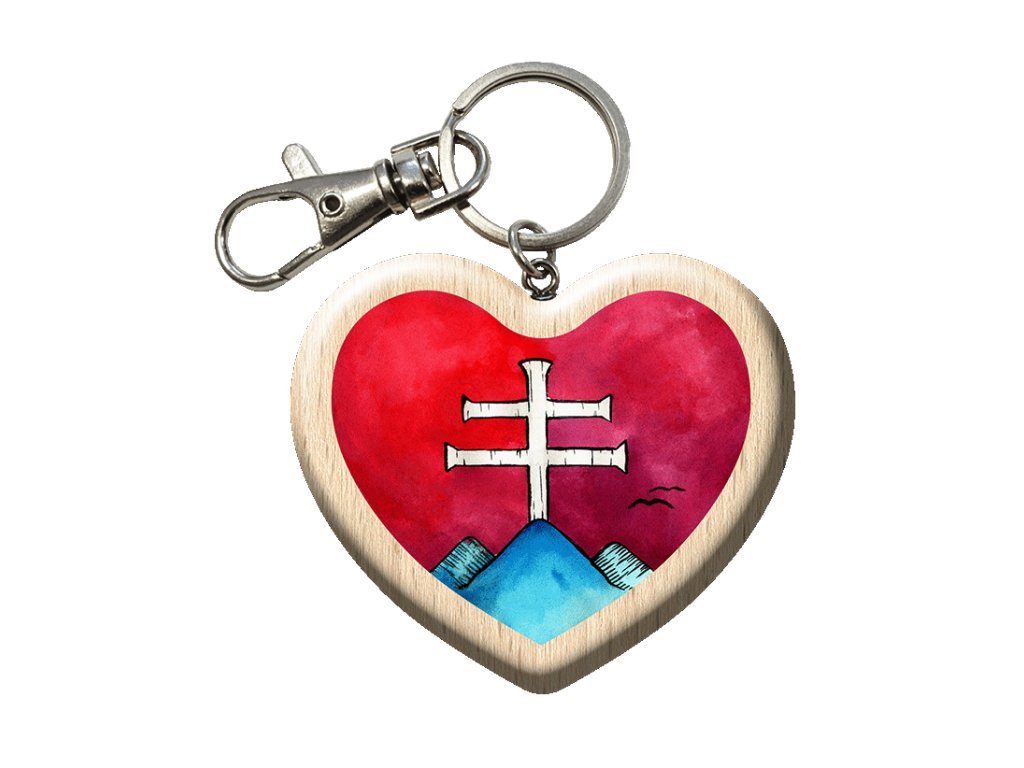 Naše prívesky na kľúče sú vyrobené z bukového dreva, ktoré sa vypínalo na kopcoch Slovenského rudohoria. Ručne ho opracovali ruky turčianskych majstrov. Ozdobili ho návrhy našich šikovných ilustrátorov, rôznymi vzormi z bohatej pokladnice ľudovej tvorivosti a obrazotvornosti. Vďaka modrenej technológii, ktorá nám umožňuje tlačiť ekologickými farbami vo vysokom rozlíšení priamo na drevo, vám prinášame túto pestrú škálu ozdobených príveskov. Tatra, Matra, Fatra, slovenské trojvršie a dvojramenný byzantský kríž, ktorý k nám pravdepodobne priniesli sv. Cyril a Metod. To je náš národný symbol, náš pohľad vpred i naše dejiny.
