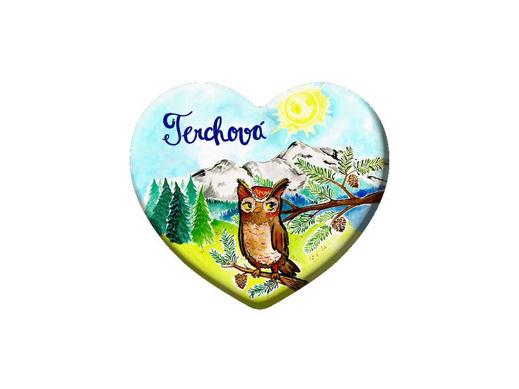 Drevená magnetka so sovou a nápisom Terchová. Magnetky sme vyrobili z bukového dreva a ručne opracovali, je v nich kus poctivej práce našich majstrov. O výzdobu sa postarali naši šikovní ilustrátori, ktorí ich návrhom venovali svoj čas a nápaditosť. Tak trochu sa snažiac vystihnúť niečo z danej lokality a vniesť to na kúsok zušľachteného dreva.