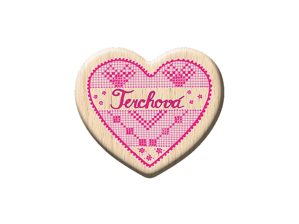 Drevená magnetka s nápisom Terchová. Magnetky sme vyrobili z bukového dreva a ručne opracovali, je v nich kus poctivej práce našich majstrov. O výzdobu sa postarali naši šikovní ilustrátori, ktorí ich návrhom venovali svoj čas a nápaditosť. Tak trochu sa snažiac vystihnúť niečo z danej lokality a vniesť to na kúsok zušľachteného dreva.