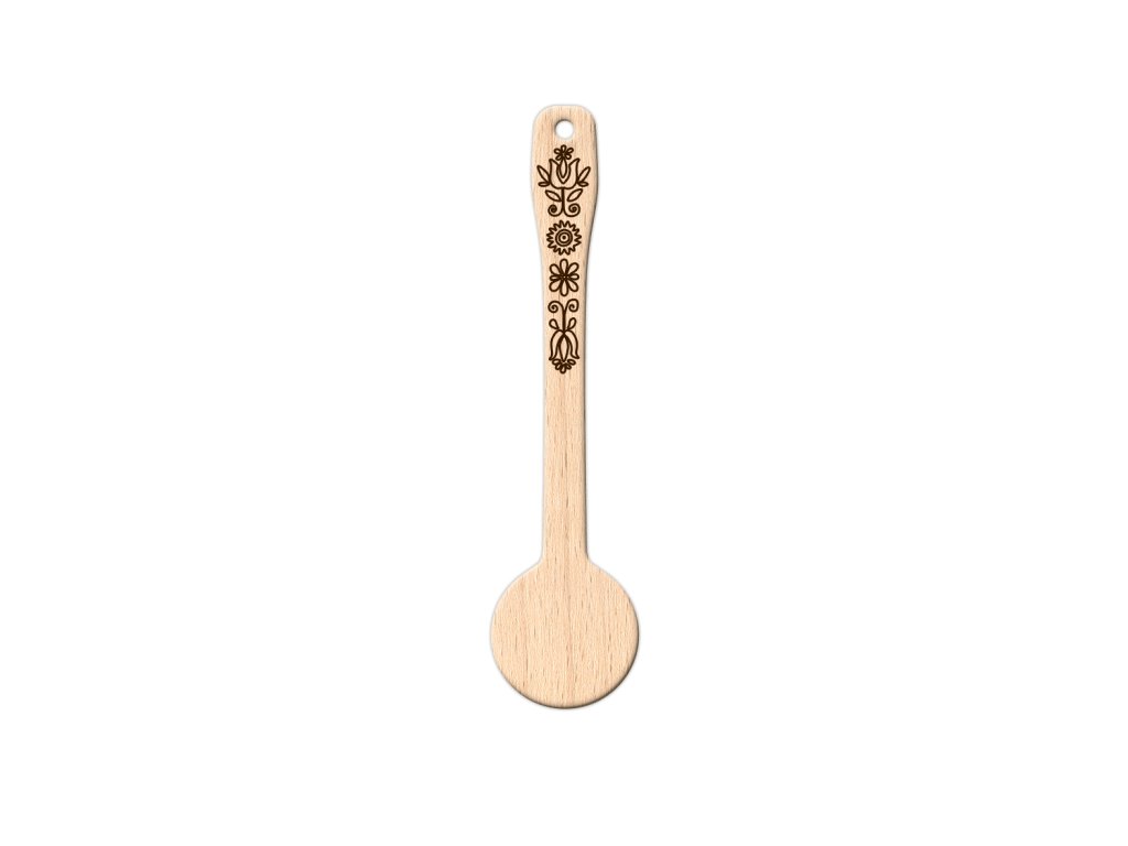 \nVarešky sú vyrobené z bukového dreva a ozdobené vypaľovaním, preto sú vhodné na použitie pri príprave jedál.