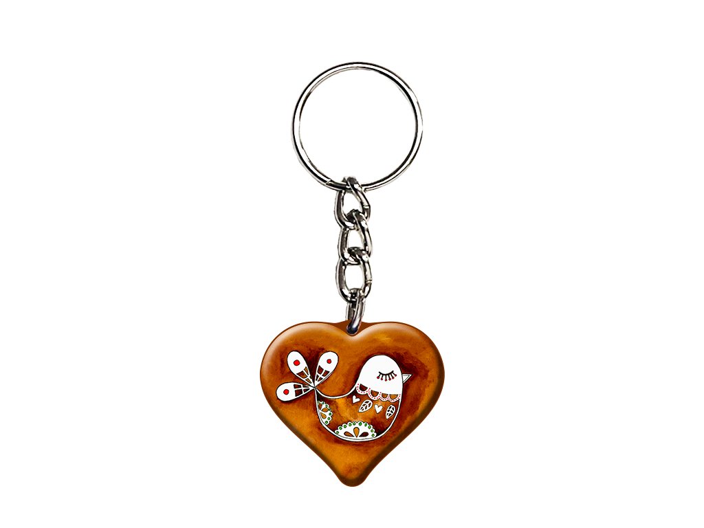Moderné materiály v kombinácii s šikovnosťou našich dizajnérov vytvorili veľmi praktickú kľúčenku, ktorá je ľahká a prijemná na dotyk. Živicová kľúčenka má ilustrácie na prednej aj zadnej strane zvyčajne rovnaké. V strede ako nosič je použitá brezová preglejka v hrúbke 3mm na ktorú je pripevnená retiazka s krúžkom, ktorá je povrchovo upravená niklom.