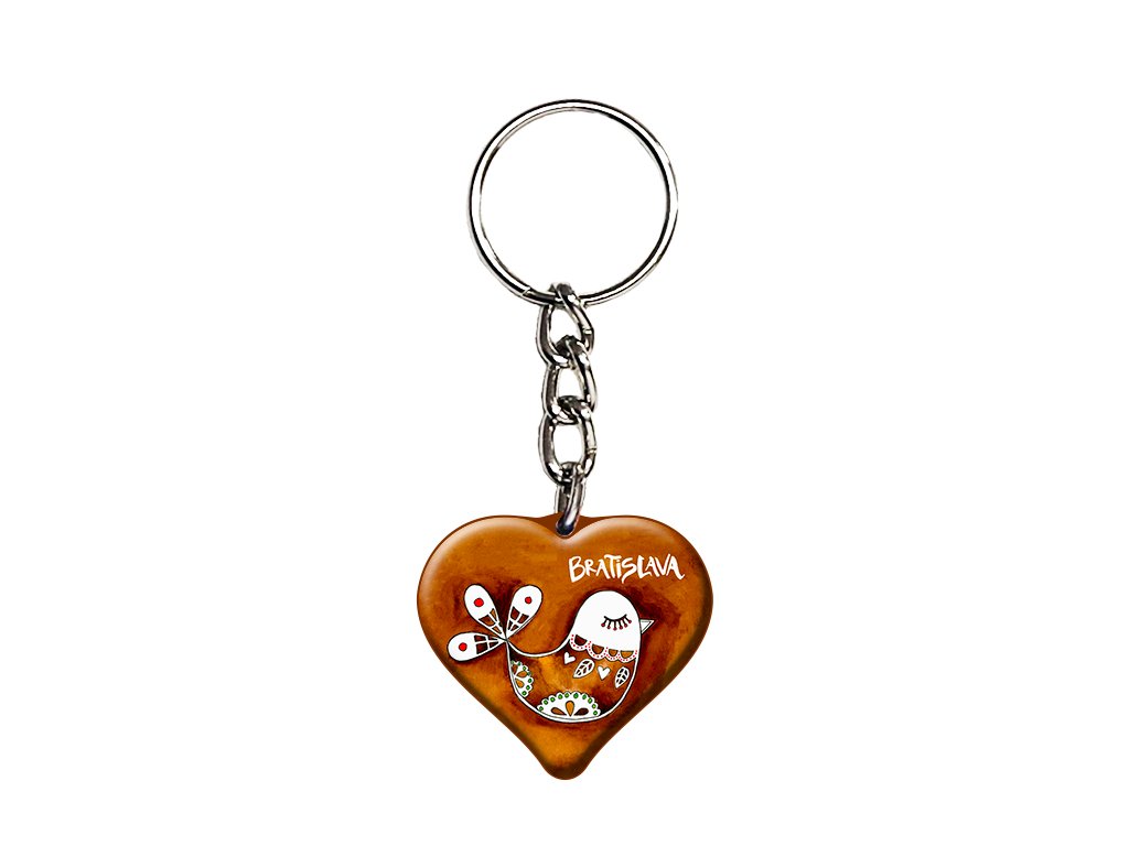 Moderné materiály v kombinácii s šikovnosťou našich dizajnérov vytvorili veľmi praktickú kľúčenku, ktorá je ľahká a prijemná na dotyk. Živicová kľúčenka má ilustrácie na prednej aj zadnej strane zvyčajne rovnaké. V strede ako nosič je použitá brezová preglejka v hrúbke 3mm na ktorú je pripevnená retiazka s krúžkom, ktorá je povrchovo upravená niklom.